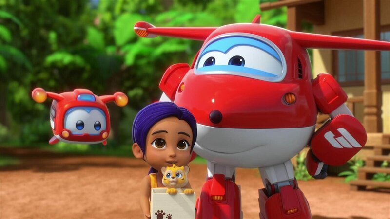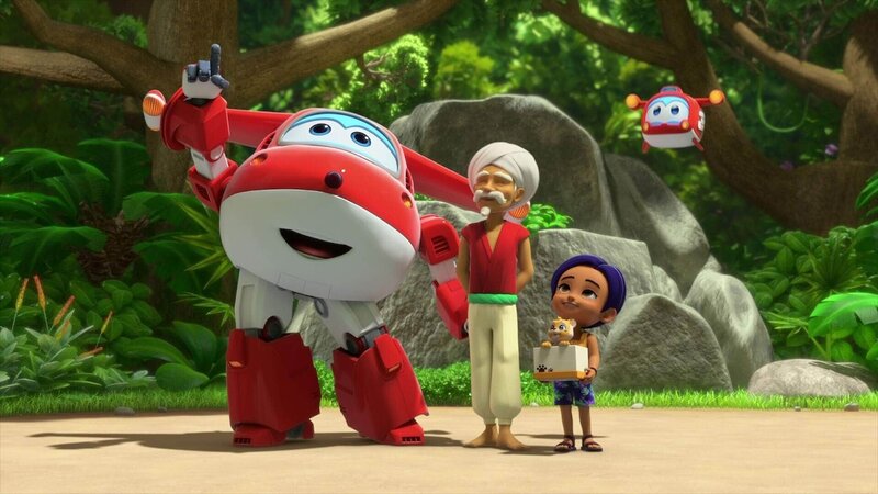 Jetts (re.) neuer Auftrag kommt aus Bangladesch. Die kleine Nanu (mi.) hat bei den SuperWings ein Paket mit Spielzeug und kleinen Snacks für eine kleine Katze, die sich unter ihrer Veranda versteckt hält, bestellt.