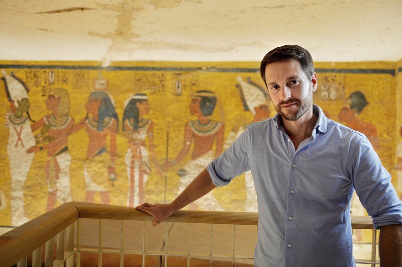 • Mirko Drotschmann in der Grabkammer des Tutanchamun im Tal der KÀÜnige.