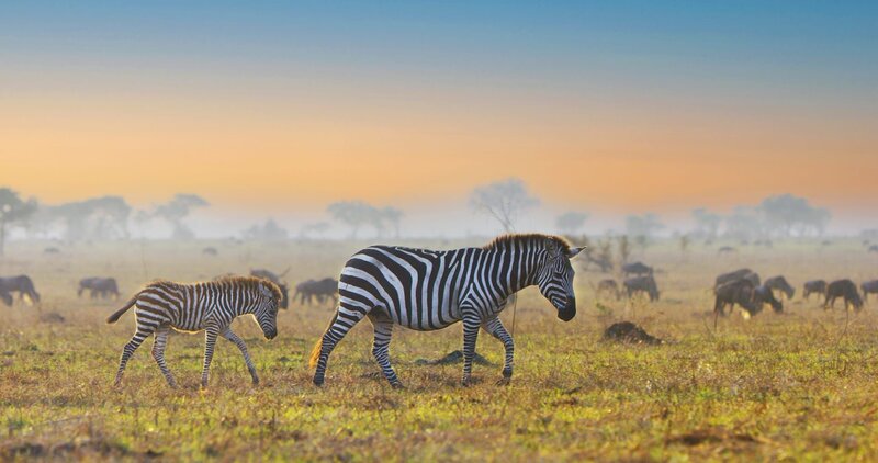 • Zebras wandern mit den Gnus durch die Serengeti.