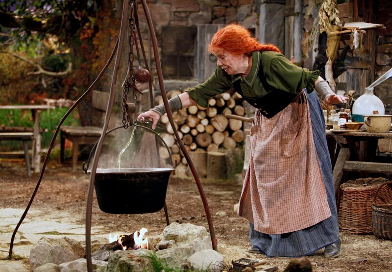 Die Buckl-Walli (Heide Ackermann) braut für die "Kundschaft" einen Hexentrank. Weiteres Bildmaterial finden Sie unter www.br-foto.de.