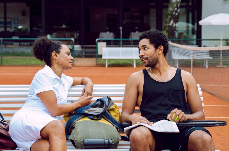 • Vince (Benito Bause) lenkt sich mit seiner Mutter Yanelle (Adisat Semenitsch) von seinen Sorgen ab.