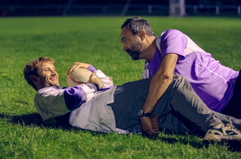 • Gelungene Ablenkung: Robbie (Frédéric Brossier, li.) lernt durch Trainer Andreas (Tom Keune) Rugby kennen.