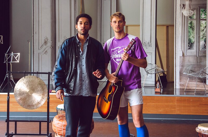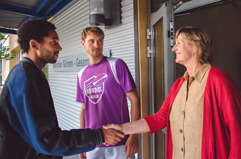 Vince (Benito Bause, li.) besucht mit Robbie (Frédéric Brossier) seine alte Schule.