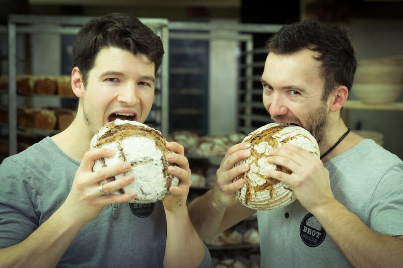 „Brotsüchtig“ – so heißt die junge, moderne Start-up-Bäckerei von (l-r) Oliver Raferzeder und Stefan Faschinger in Linz-Urfahr.