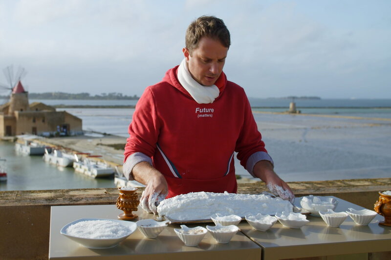 • Köstliches Sizilien – Von der Küste ins Inselinnere. Antonio D'Ali Staiti umhüllt einen Wolfsbarsch mit einer Salzkruste.