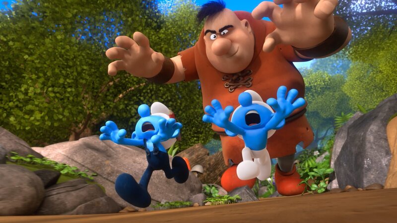 Der Oger Großmaul verfolgt die Schlümpfe.
