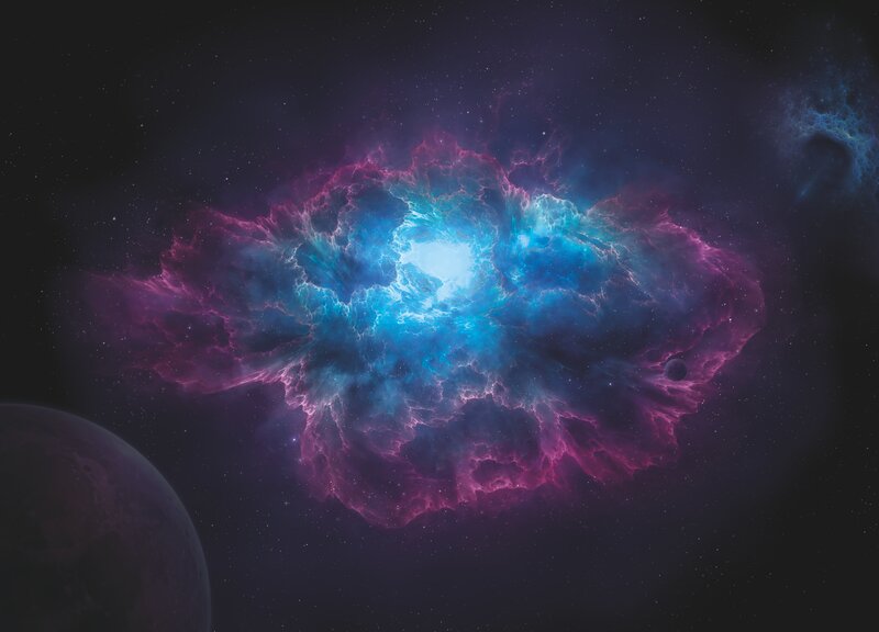 Mit Weltraumteleskopen können Astronominnen und Astronomen weit ins All hinausschauen. Bilder von Nebeln und Sternenfeldern werden als sogenannte Falschfarbenbilder zu farbenfrohen Darstellungen des Weltalls.