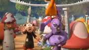 Handy und Sturmi haben von Gargamels Plan erfahren und suchen nach einer Lösung.