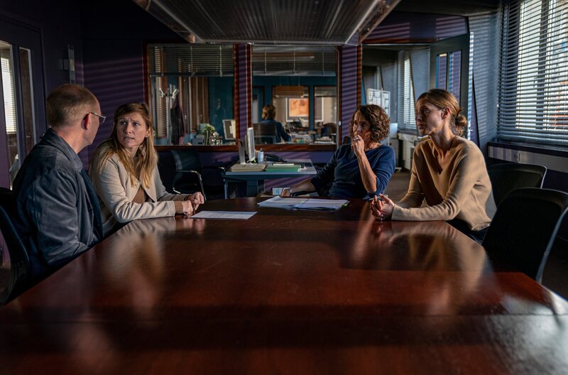 • Marlons Eltern Gesa (Julischka Eichel) und Steffen (Markus Lerch) Janson sind tief erschüttert, verbergen aber auch nicht, dass sie Schwierigkeiten mit ihrem Sohn hatten vor den Ermittlern (Ulrike Folkerts, 2.v.r.; Lisa Bitter, r.).