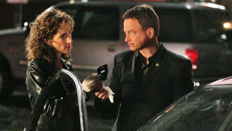 Mac (Gary Sinise) und Stella (Melina Kanakaredes) untersuchen die Leiche eines Mannes (Kato James Bonner, l.), dessen Kehle durchschnitten wurde.