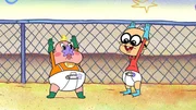 Barnacle Bambino / Mermaid Minor / Dirty Baby Bubble / Young Barnacle Boy / Young Mermaid Man / Dirty Bubble / SpongeBob / Soldiers / Audience / Slappy