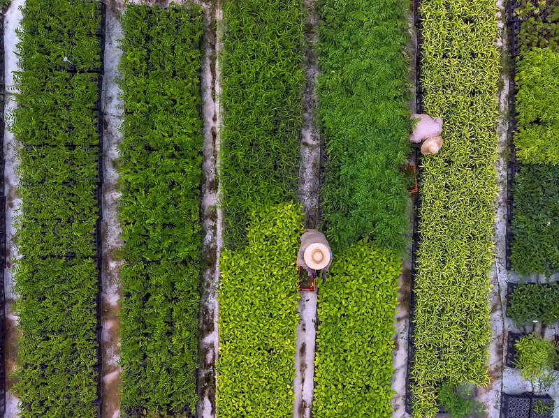 • Um die Renaturierung einer ehemaligen Farm in Brasilien zu beschleunigen, werden viele jungen Bäume gepflanzt.