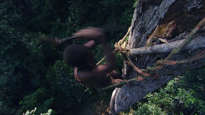 In Zentralafrika muss Banda in einer Initiationszeremonie auf einen riesigen Baum klettern und Honig sammeln. Honig gilt als das Elixir des Lebens. Nur mit Hilfe von Seilen und handgefertigten Kletterhilfen arbeitet er sich den Baum hoch.