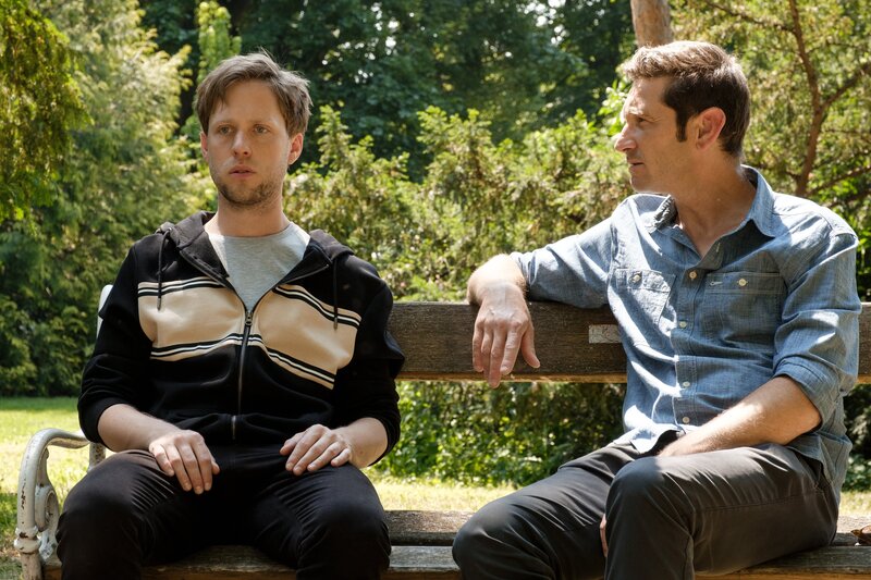 • Bezirksinspektor Klaus Lechner (Andreas Kiendl, r.) versucht, sich von der Situation im Park, von der ihm Louis Mahrer (Markus Freistätter, l.) gerade berichtet, ein Bild zu machen.