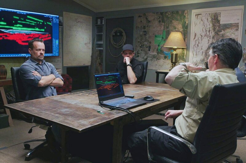 Das Team bohrt in den massiven Felsen der Mesa auf der Ranch.