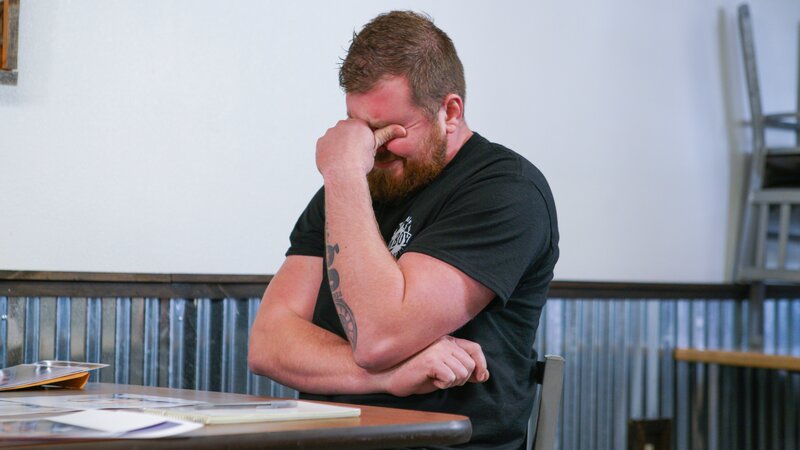 Chef Robert Irvine talks with George Mulaj, owner of Texas Cowboy BBQ, in the old dining area at the restaurant in Abilene, TX, as seen on Restaurant:Impossible, Season 20.