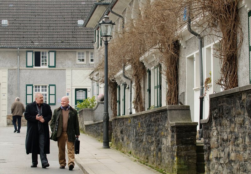 • Auf der Essener Margarethenhöhe: Freddy Schenk (Dietmar Bär,l) befragt einen ehemaligen Klassenkameraden des Ermordeten, Olaf Benrath (Holger Kunkel).