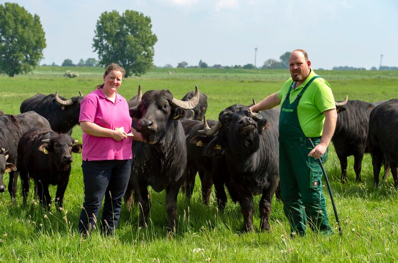 Sechs Landfrauen- und männer aus NRW besuchten sich auf ihren Höfen. Diesmal reisten die Gastro-Konkurrenten in die Auenlandschaft Bislich, wo Martin Döring Wasserbüffel züchtet, die am liebsten ein ausgiebiges Bad nehmen. Auf dem Hof, der bereits seit Napoleons Zeiten existiert, servierte Martin seinen Gästen Wasserbüffel-Hüftsteaks und zum Nachtisch gegrillte Obsttütchen mit Vanille-Eis.
