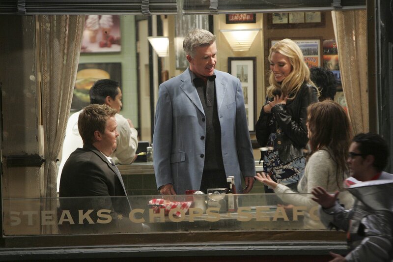 • Ted, Marshall und Lily sind zu der Überzeugung gekommen, dass man Barney (Neil Patrick Harris, l.) und Robin (Cobie Smulders, 2.v.r.) auseinanderbringen sollte. Mit Hilfe von Alan Thicke (Alan Thicke, 2.v.l.), Meg (April Bowlby, M.) und dem Lost In Space-Roboter (Whit Hertford, r.) hoffen sie auf Erfolg ...