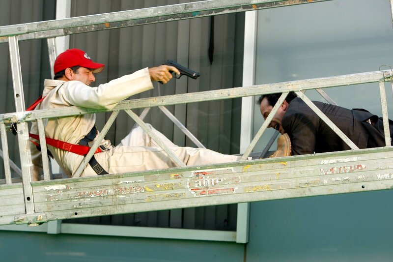 "Monk", "Mr. Monks Freude endet am Schreibtisch." Monk kann kaum glauben, dass er wieder in den Polizeidienst aufgenommen werden soll. Seine anfängliche Euphorie wird allerdings jäh getrübt, als er erfährt, dass ihm lediglich ein Schreibtischjob zugewiesen wird. Gleichzeitig gelingt es seinen Kollegen im Außendienst, den lang gesuchten 'Spitzhackenkiller' zu schnappen. Durch Zufall wird Monk auf den Fall aufmerksam - und entdeckt sogleich einige Ungereimtheiten. Kurzerhand beschließt er, auf eigene Faust zu ermitteln.Im Bild (v.li.): Mark Harelik (Mikel Alvanov), Tony Shalhoub (Adrian Monk).