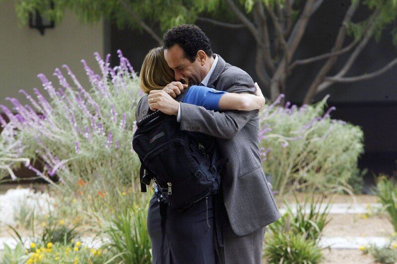 • Monk (Tony Shalhoub) nimmt überglücklich Molly (Alona Tal) in seine Arme.