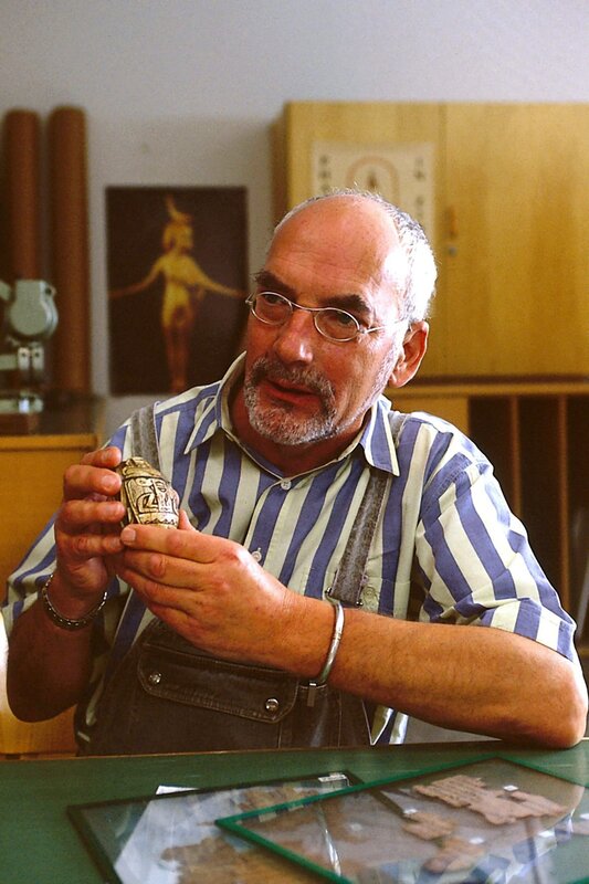 Peter (Peter Lustig, re.) fragt einen Käferforscher (Klaus Mikoleit), was für eine Käferart sich hinter dem geheimnisvollen Stein verbirgt.