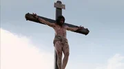 Judas bereut, dass er Jesus verraten hat. Jesus wird dem römischen Statthalter Pilatus vorgeführt. Als Pilatus die Volksmenge wählen lässt, ob er Jesus oder Barabbas begnadigen soll, wettern sie gegen Jesus. Nach Spott und Misshandlung wird Jesus ans Kreuz genagelt. Bei seinem Tod zerreißt im Tempel der Vorhang vor dem Allerheiligsten. Wachen sichern das Grab, in das Jesu Leichnam gelegt wird.