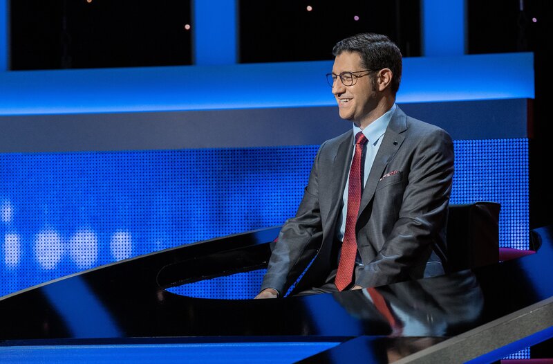 Moderator Alexander Bommes mit dem Kandidaten Max Bukta.