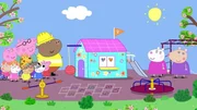 Peppa und ihre Freunde sind gerade auf dem Spielplatz, als Herr Bulle dort den Boden aufreißt.