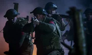 • REEANCTMENT - Ein Artilleriebeobachter des 242. Infanterieregiments ruft die Artillerie von einem Kirchturm in Hatten, Frankreich, herbei. Gespielt von Cole Breckell. (Holdout II Productions Inc./Liam Herring)
