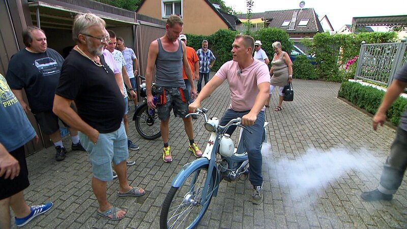 • Otto Schulte mit Kaufinteressenten für das Moped