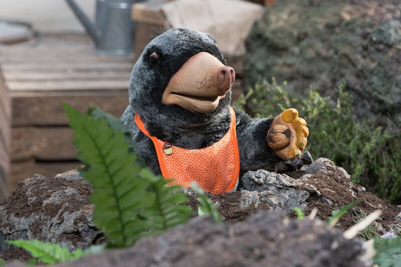• Maulwurf Grete (Viviane Podlich) beschwert sich: Ihr ist beim Graben etwas Hartes auf den Kopf gefallen!
