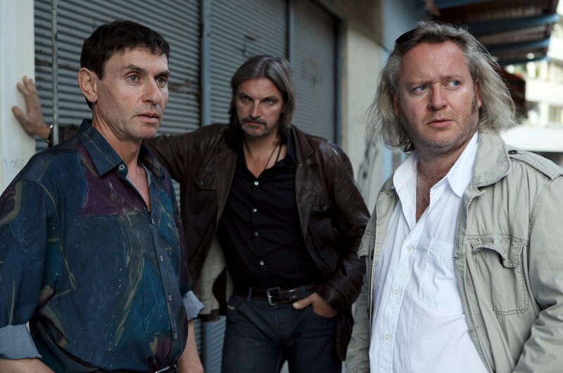 • "Soko Donau", "Gegen den Strom." In der Wache taucht ein 12-jähriges Mädchen, Anisa Kostres, auf und will ihre ältere Schwester Samira als vermisst melden. Carl erklärt ihr, dass die SOKO dafür nicht zuständig ist, doch dann geht die Meldung ein, dass auf der Reichsbrücke blutige Kleidungsstücke und der Ausweis des verschwundenen Mädchens gefunden wurden. Alles deutet auf ein Gewaltverbrechen hin, bei dem das Opfer in die Donau geworfen wurde. Der Verdacht richtet sich gegen den Freund des Mädchens, den Sohn einer verfeindeten Familie. Die Leiche des Mädchens ist allerdings nicht auffindbar. Im Bild (v.li.): Mark Zak (Bojan Savic), Stefan Jürgens (Carl Ribarski), Gregor Seberg (Helmuth Nowak).