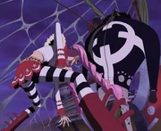 Nami nimmt die Verfolgung Peronas auf, die sich mit der Sunny aus dem Staub machen will. Dabei trifft sie auf Bartholomäus Bär, einen Samurai der Meere. Perona legt sich mit ihm an - woraufhin er sie kurzerhand verschwinden lässt.Nami nimmt die Verfolgung Peronas auf, die sich mit der Sunny aus dem Staub machen will. Dabei trifft sie auf Bartholomäus Bär, einen Samurai der Meere. Perona legt sich mit ihm an - woraufhin er sie kurzerhand verschwinden lässt.