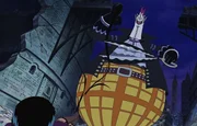 Einer nach dem anderen versuchen die Strohhutpiraten, es mit dem Riesen-Zombie aufzunehmen, doch Oz und Moria strecken jeden einzelnen nieder. Schließlich sind nur noch Nami, Lysop und Zorro übrig und von Ruffy fehlt jede Spur.