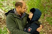 • Mette (Anna Fischer) hat Frank (Aljoscha Stadelmann, li.) zum Geburtstag ein Survivalwochenende mit Heiner (Moritz Führmann, re.) geschenkt und macht zum Abschied ein Selfie.