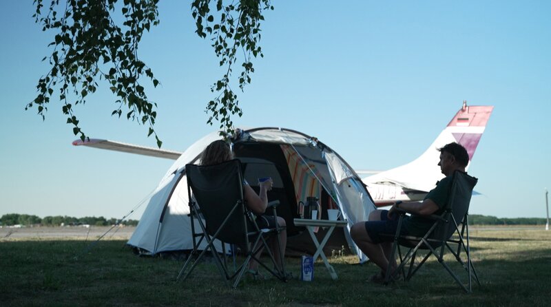 Auf einem ehemaligen Militärflugplatz in der Mecklenburger Seenplatte will Flavio Laus seinen Traum verwirklichen. Dort entsteht ein Fliegerdorf nach US-amerikanischem Vorbild. Zwölf Shelter sind in den vergangenen Jahren schon verkauft worden. Vom Fertigteilhaus über Backsteinbau bis hin zum Tiny House aus Holz bauen dort Flugverrückte wie der 39-Jährige Italiener ihr Traumhaus mit Flugzeug am Bett.