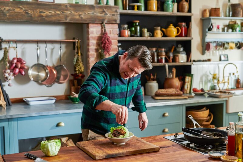 Diesmal verrät Jamie seine genialen Rezepte zu einer eleganten Pasta mit Räucherlachs, seinem raffiniert gefüllten Beef-Burger und einfach köstlichen karamellisierten Apfelschnecken.