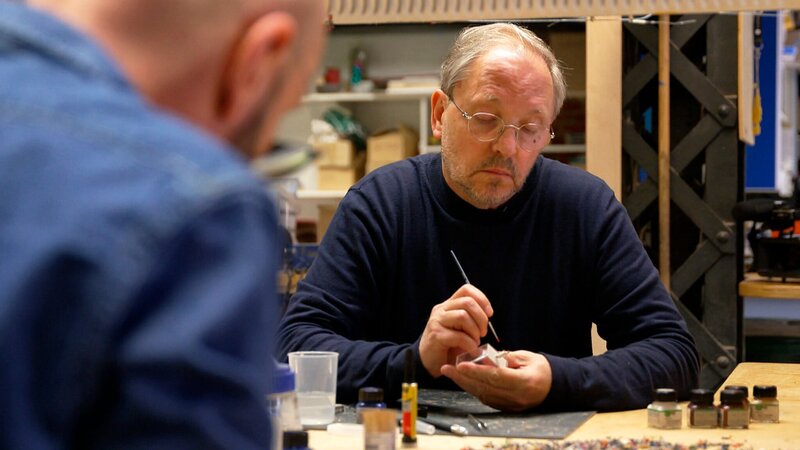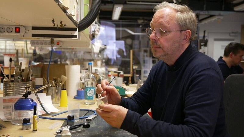 Zusammen mit seinem Schauspieler-Kollegen Jon Flemming Olsen (Rückansicht) will Comedian Olli Dittrich die Kultfigur "Dittsche" in der Modellbauanlage verewigen.