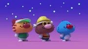 Oggy Oggy, Sporty und Mallow beobachten die Sterne und wollen sich auf den Weg zum Mond machen.