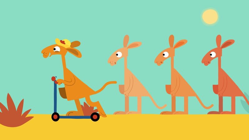 Das Känguru hat die tollsten Spielsachen in seinem Beutel und wird bewundert. Doch die anderen haben auch etwas in ihren Beuteln.