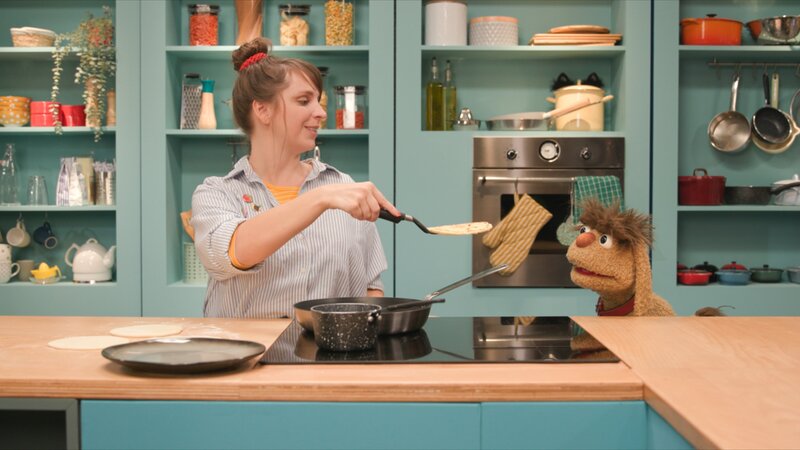 Maya hat aus vielen leckeren Pfannenbroten den schiefen Brotturm vom Leckerladen gezaubert. Das sind so viele, dass sie sich absolut sicher ist - Moppi kann unmöglich alle auffuttern. Und sie hat recht, nach vielen Broten muss Moppi aufgeben. Mayas Gewinner-Choreografie hält sie allerdings nicht davon ab Moppi zu zeigen, wie man die leckeren Brote zubereitet. Gemeinsam gehen die beiden einkaufen und verwandeln den Leckerladen in die Leckerküche.