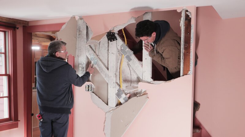Jon and Scott get started on the dramatic change to the staircase at the Kuprycz house, as seen on HGTV's Farmhouse Fixer.