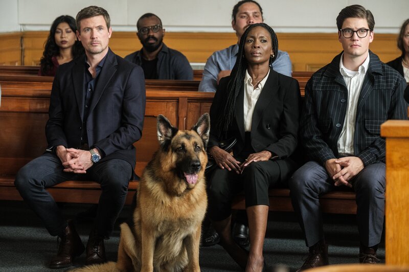 • L-R: Charlie Hudson (John Reardon), Rex, Sup. Vanessa Lewis (Lanette Ware) und Jesse Mills (Justin Kelly)