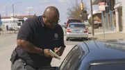 Der Detektiv nimmt Informationen von Autofahrern entgegen.
