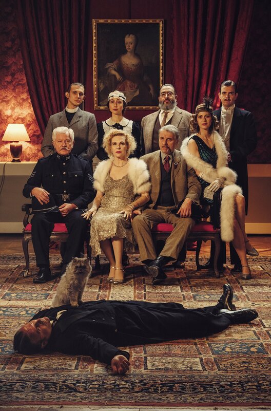 Liegend: Arthur Rogers (Christoph Mory); sitzend, von links: Detective Constable Ivor Partridge (Miroslav Nemec), Lady Mona Bantam (Sunnyi Melles), Detective Chief Inspector Francis Lightmyer (Udo Wachtveitl) und Kitty (Katharina Schlothauer), stehend: Reverend Teal (Joshua Seelenbinder), Heather (Marie Rathscheck), Dr. Mallard (Alexander Hörbe) und Charles "Charlie" Bantam (Ferdinand Hofer).