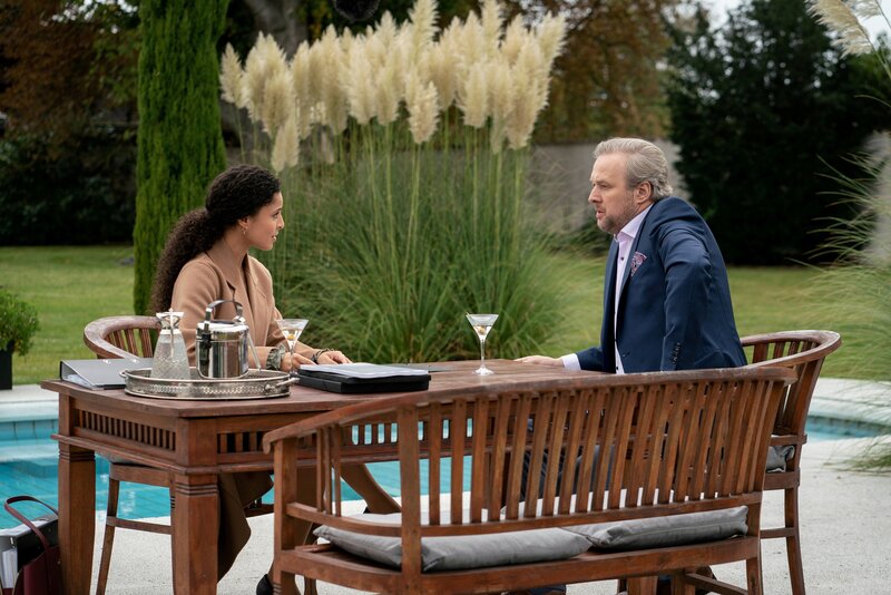 • Der Investor Benno Götze (Stephan Grossmann) setzt Anwältin Tessa Tilker (Patricia Meeden) unter Druck, schnellstmöglich einen Vertrag aufzusetzen.