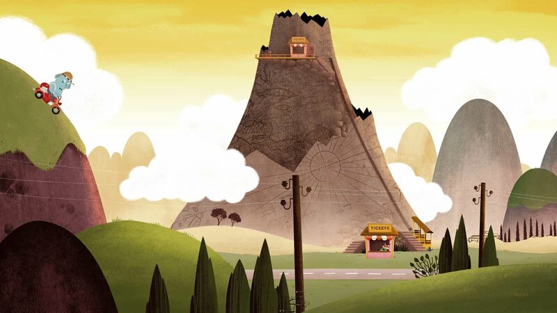 Charlie und sein Opa haben die Spitze des Vulkans mit der Seilbahn erreicht.