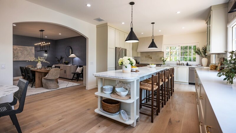 Nachdem Emily und Adhir eine historische Villa in der Nachbarschaft ihrer Träume mitten in Los Angeles erworben haben, müssen sie feststellen, dass ihr Haus im spanischen Revival-Stil in einem schlimmen Zustand ist. Zum Glück wohnt Drew in einem ähnlichen Haus ganz in der Nähe, sodass er und Jonathan ihre Kenntnis nutzen können, um das Wohnzimmer, das Esszimmer und die Küche neu zu gestalten. Das Resultat vereint die kalifornische Leichtigkeit mit mediterranem Charme und einem modernen Twist. Das perfekte Haus für Emily und Adhir, um ihre kleine Tochter großzuziehen.