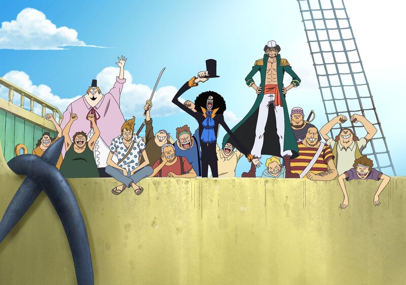 Brook erinnert sich an seine alten Zeiten bei der Rumba-Piratenbande und die Abenteuer, die er und seine Freunde mit dem Wal La Boum erlebten.Brook erinnert sich an seine alten Zeiten bei der Rumba-Piratenbande und die Abenteuer, die er und seine Freunde mit dem Wal La Boum erlebten.